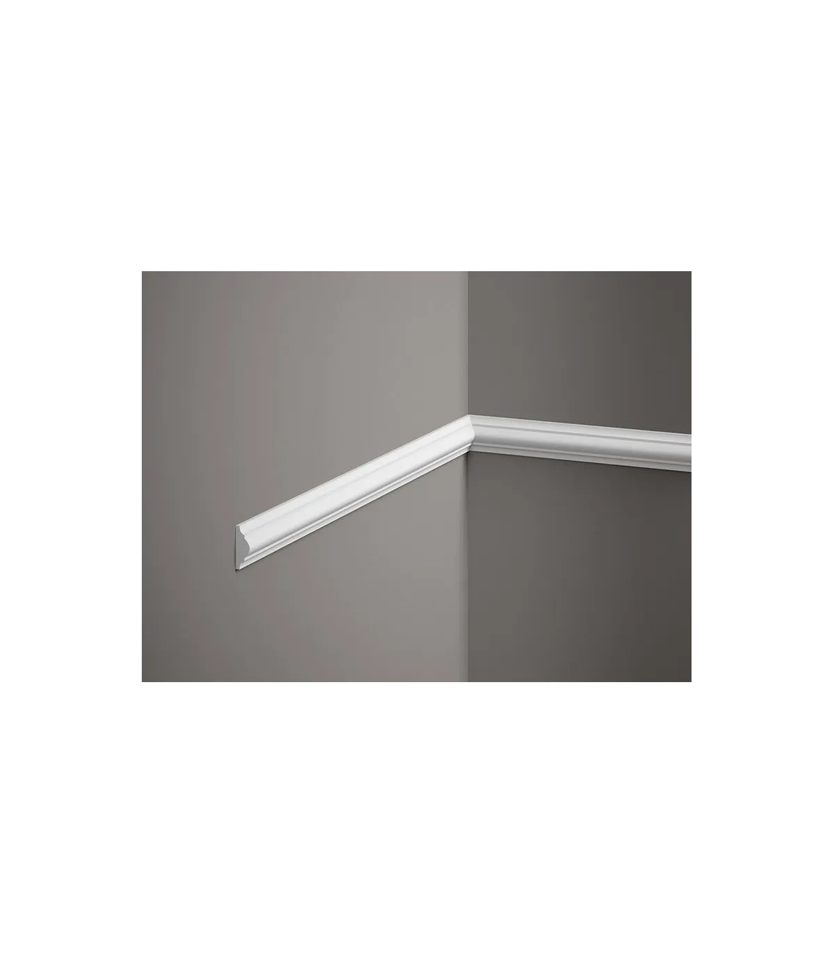 Nástěnná lišta MD003 je minimalistický design s decentním zdobením uprostřed soklové lišty. Profil byl vyroben z extrémně lehké pěny ProFoam, která díky své hmotnosti umožňuje bezproblémovou instalaci v jakékoli výšce stěny. MD010 bude fungovat jak jako nástěnná a odřezávací lišta, ale také jako prvek větší dekorativní kompozice. Soklová lišta má vodotěsné vlastnosti, takže není problém s její instalací v interiérech vystavených neustálému kontaktu s vlhkostí. Dobře si poradí i s UV zářením – při intenzivním slunci se nedrolí a nežloutne. Můžete si být jisti, že i po mnoha letech používání si nástěnná lišta zachová svůj bezvadný vzhled. Délka je 2,0 m.