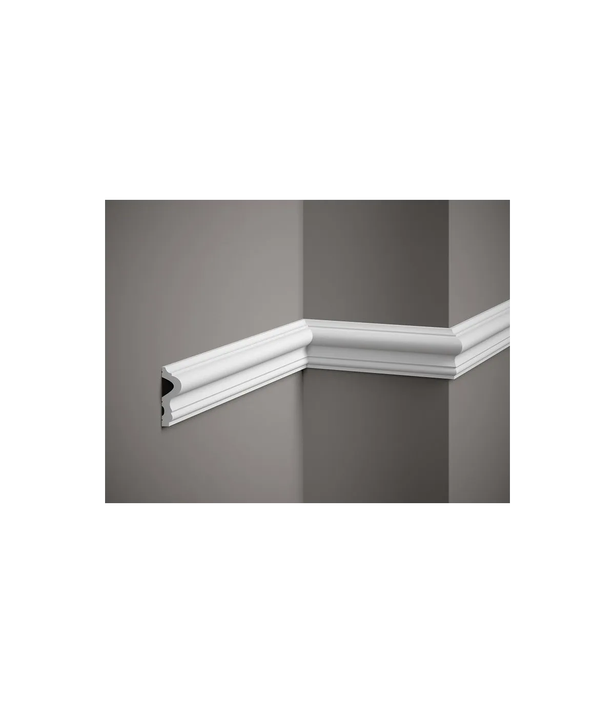 Nástěnná lišta MD346 je minimalistický design s decentním zdobením uprostřed soklové lišty. Profil byl vyroben z extrémně lehké pěny ProFoam, která díky své hmotnosti umožňuje bezproblémovou instalaci v jakékoli výšce stěny. MD346 bude fungovat jak jako nástěnná a odřezávací lišta, ale také jako prvek větší dekorativní kompozice. Soklová lišta má vodotěsné vlastnosti, takže není problém s její instalací v interiérech vystavených neustálému kontaktu s vlhkostí. Dobře si poradí i s UV zářením – při intenzivním slunci se nedrolí a nežloutne. Můžete si být jisti, že i po mnoha letech používání si nástěnná lišta zachová svůj bezvadný vzhled. Délka je 2,0 m.