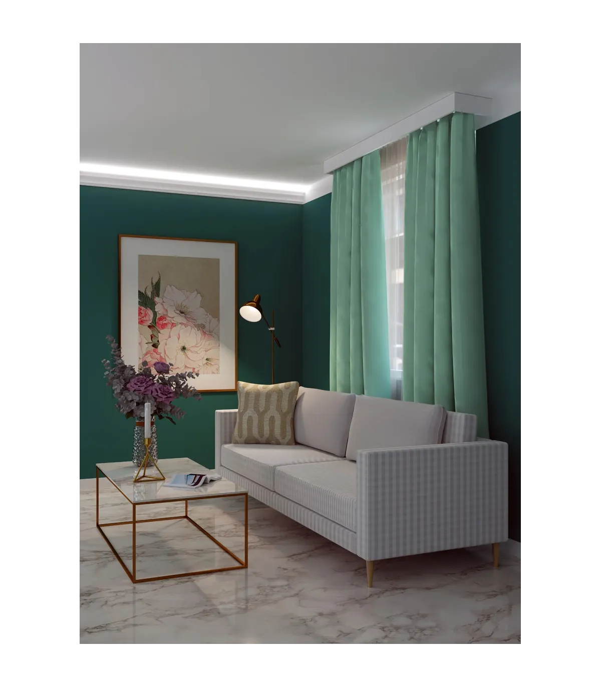 Lišta v modernom dizajne určená špeciálne na zakrytie garniže. Predstavuje elegantnú alternatívu k zakrytiu často nevzhľadných garniž pomocou sadrokartónových alebo drevených dosiek. Je ľahká a umožňuje umiestnenie dnes toľko obľúbeného LED osvetlenia.