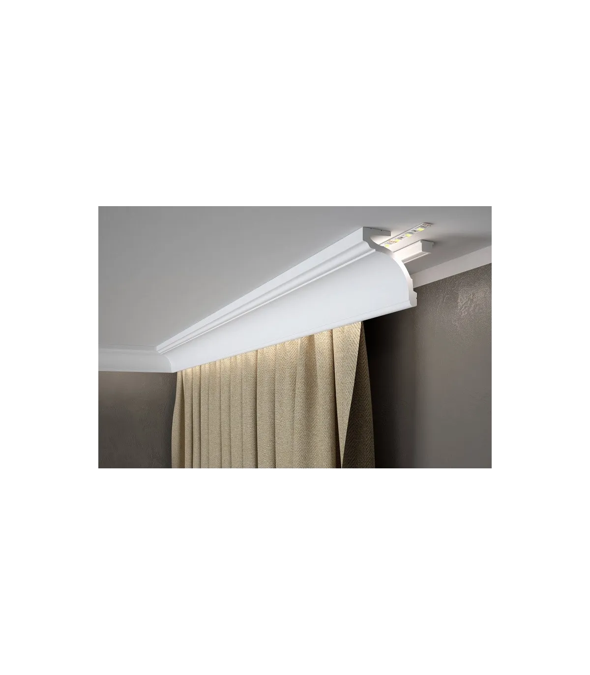 Lišta v moderním designu určená speciálně pro zakrytí garnýže. Představuje elegantní alternativu k zakrytí často nevzhledných garnýž pomocí sádrokartonových nebo dřevěných desek. Je lehká a umožňuje umístění dnes tolik oblíbeného LED osvětlení.