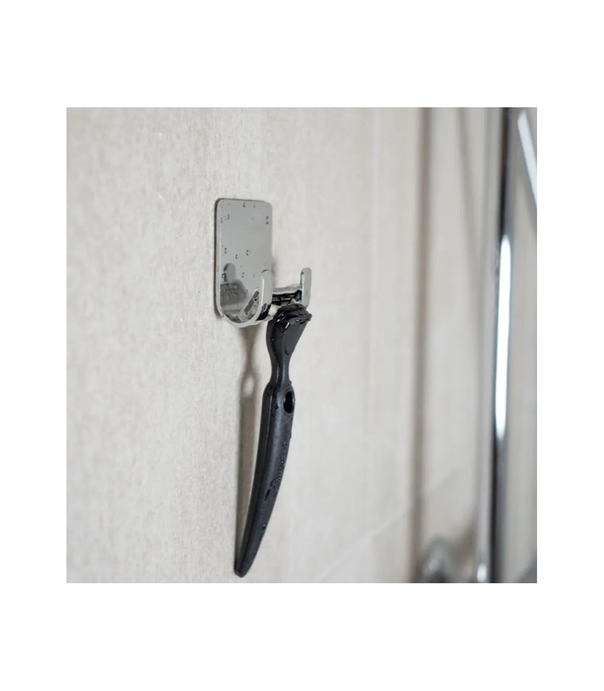 Tento všestranný háček lze umístit do sprchy a uspořádat holicí strojky, pilníky na nohy a další. Nástěnný držák je určen k umístění různých typů holicích strojků a lze jej použít i jako háček na ručníky nebo jiné předměty.