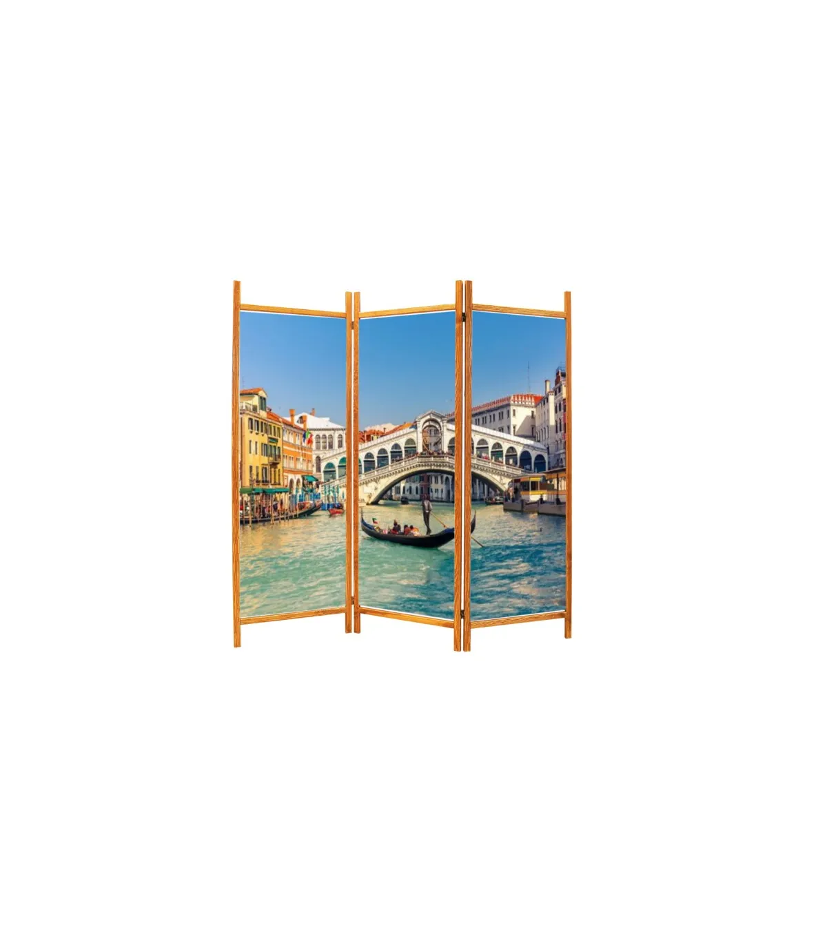 Rám paravánu sestává z dřevěné konstrukce a výplň je z potištěného plátna- textilie. Tisk na paravánu je jednostranný.