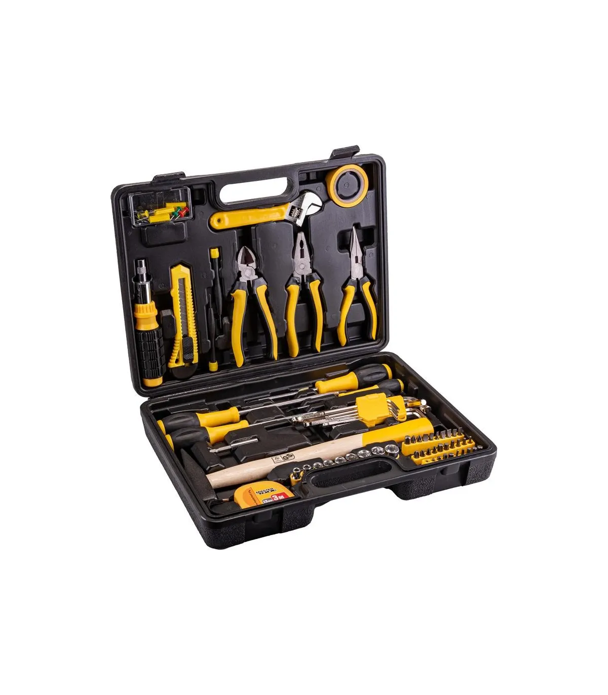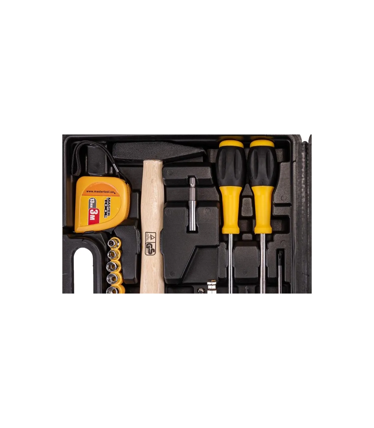 Sada nástrojů Mastertool 78-0330 je určena k používání při drobných domácích opravách a v dílnách. Obsahuje 149 nezbytných prvků, jako jsou kladivo, kombinované kleště, sada šroubováků, imbusy, měřící páska, nůž, univerzální klíč a velké množství upevňovacích prvků, bez kterých by oprava nebyla možná. Pro pohodlné používání jsou všechny nástroje umístěny v samostatných buňkách. Plastový kufr udržuje všechny nástroje v bezpečí a nezabírá mnoho místa při skladování.