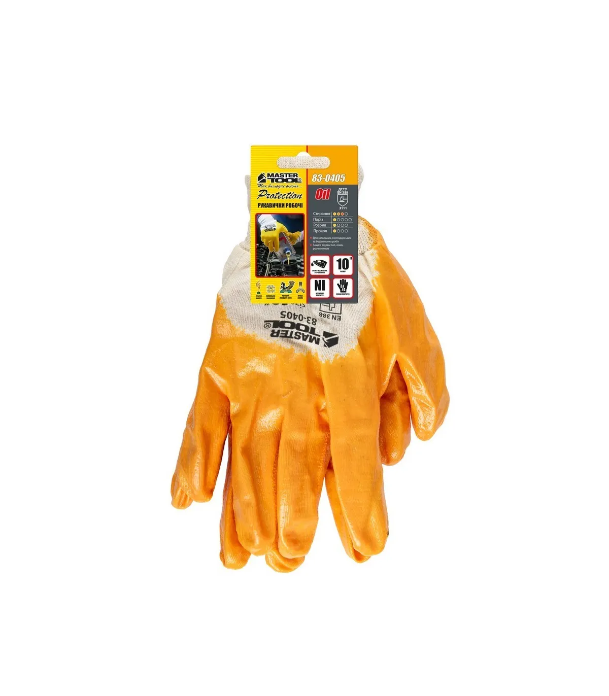 Rukavice pracovní MASTERTOOL 8304-05 z bavlny s nitrilovým povlakem, žlutý, pletená manžeta 10"