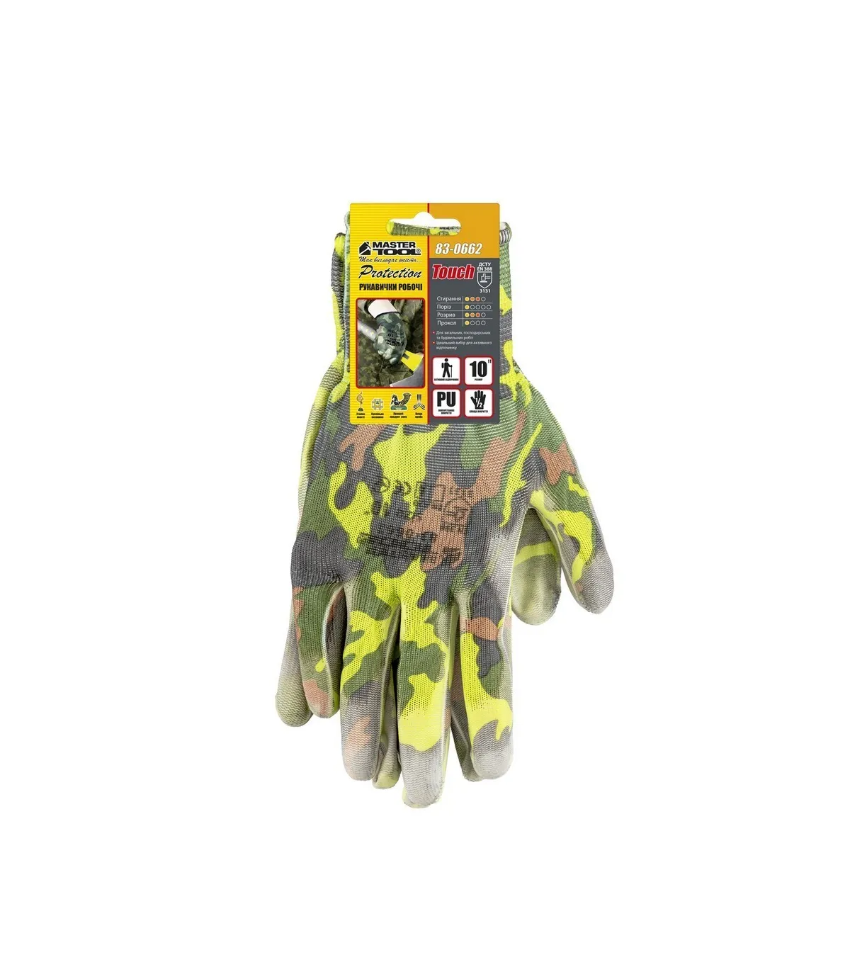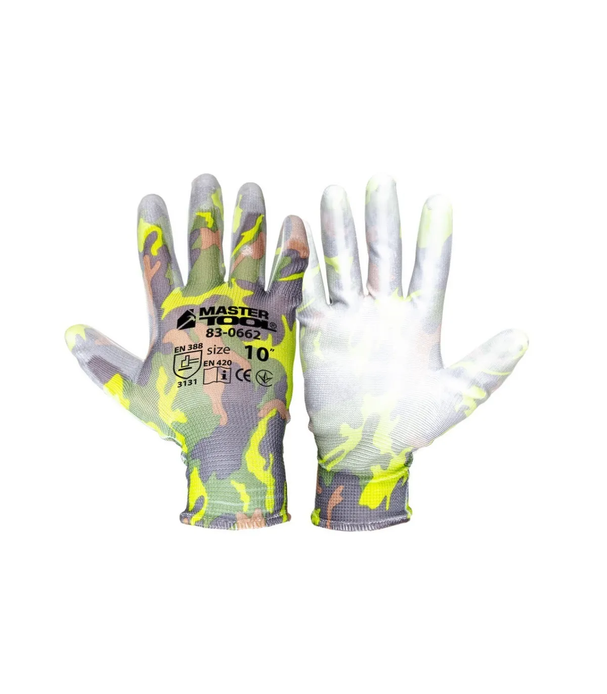 Rukavice pracovní MASTERTOOL pletené bezešvé s PU povlakem Camouflage 10" 83-0662