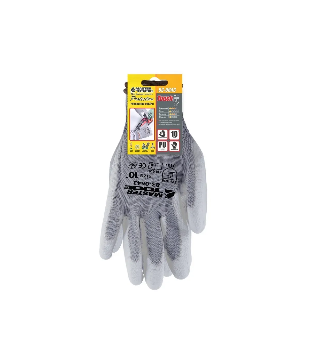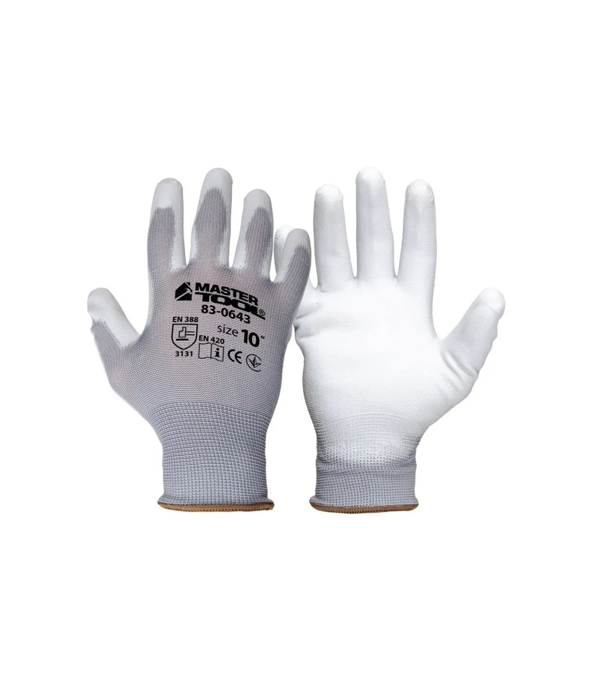 Rukavice pracovní MASTERTOOL pletené bezešvé s PU povlakem šedé 10" 83-0643