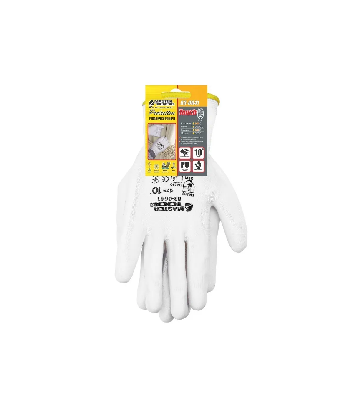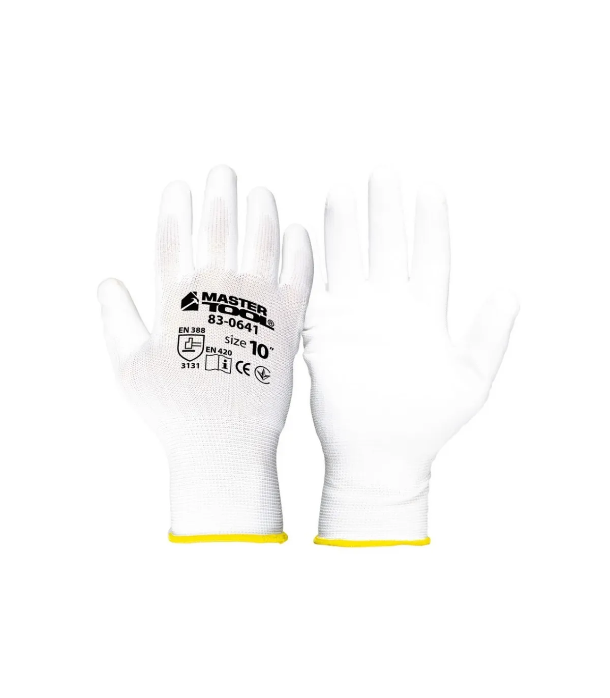 Rukavice pracovní MASTERTOOL pletené bezešvé s PU povlakem bílé 10" білі 83-0641