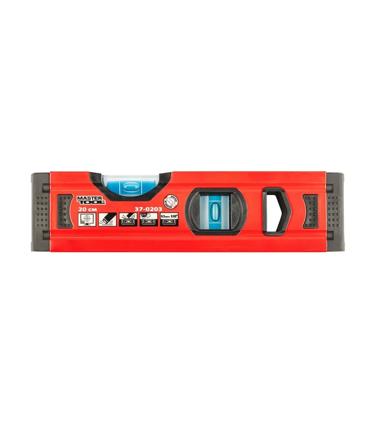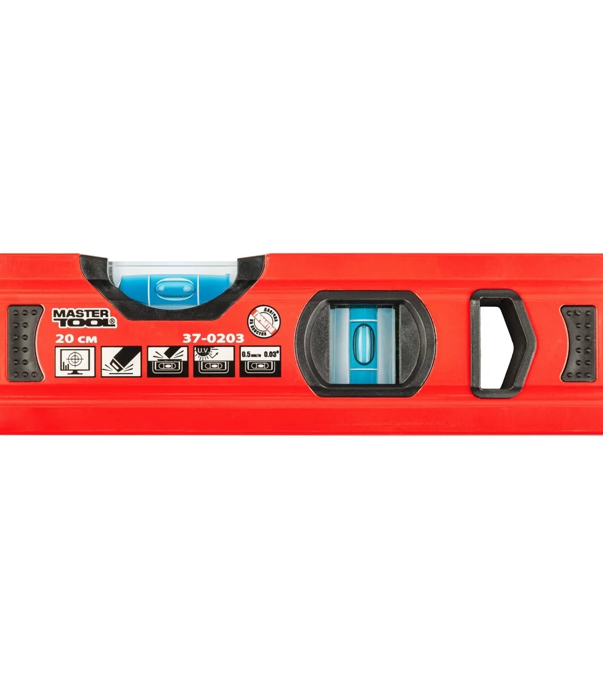 Vodováha hliníková stavební MASTERTOOL PROFI 20 cm 2 libely 0,5 mm/m 0,03° výklenek pro montáž na potrubí 37-0203