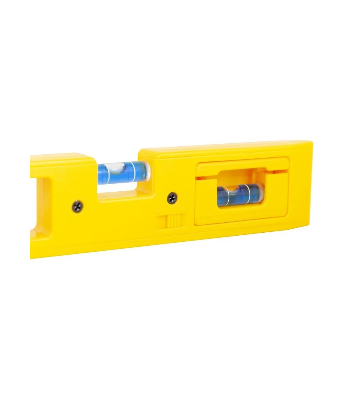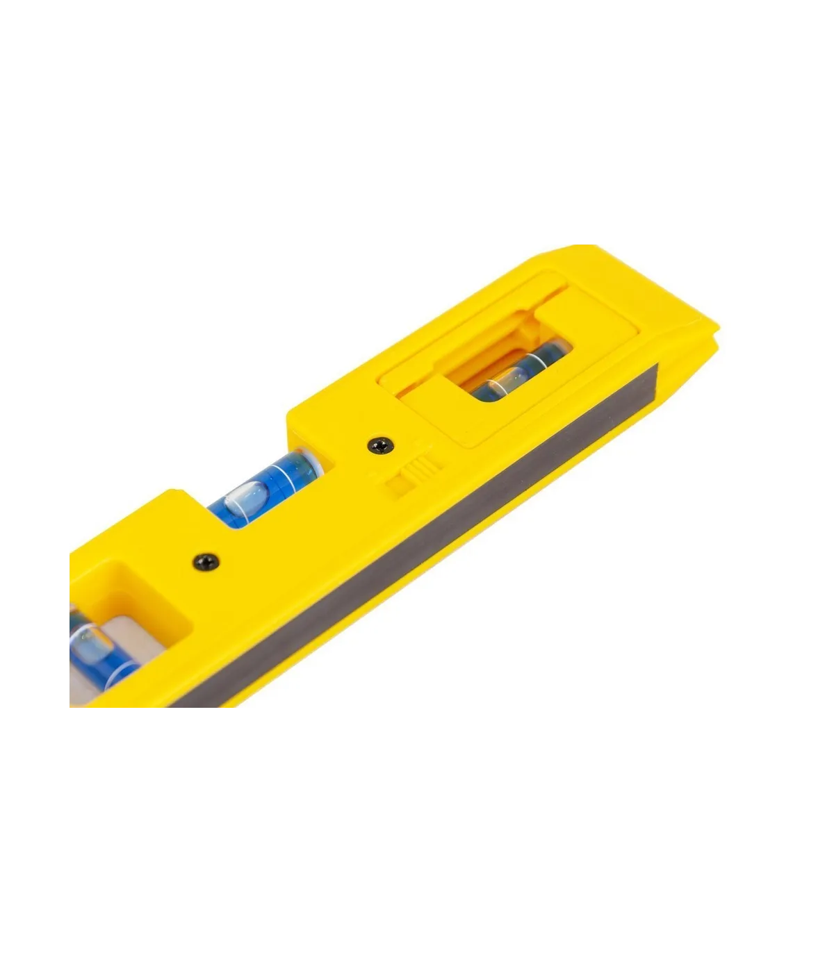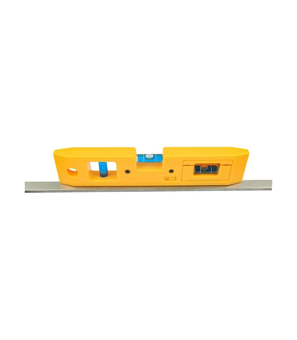 Je vybavena třemi bublinami, ze kterých je jedna odnímatelná, a magnetickým fixátorem, který umožňuje pevné připevnění nástroje k kovovým povrchům pro stabilní měření.