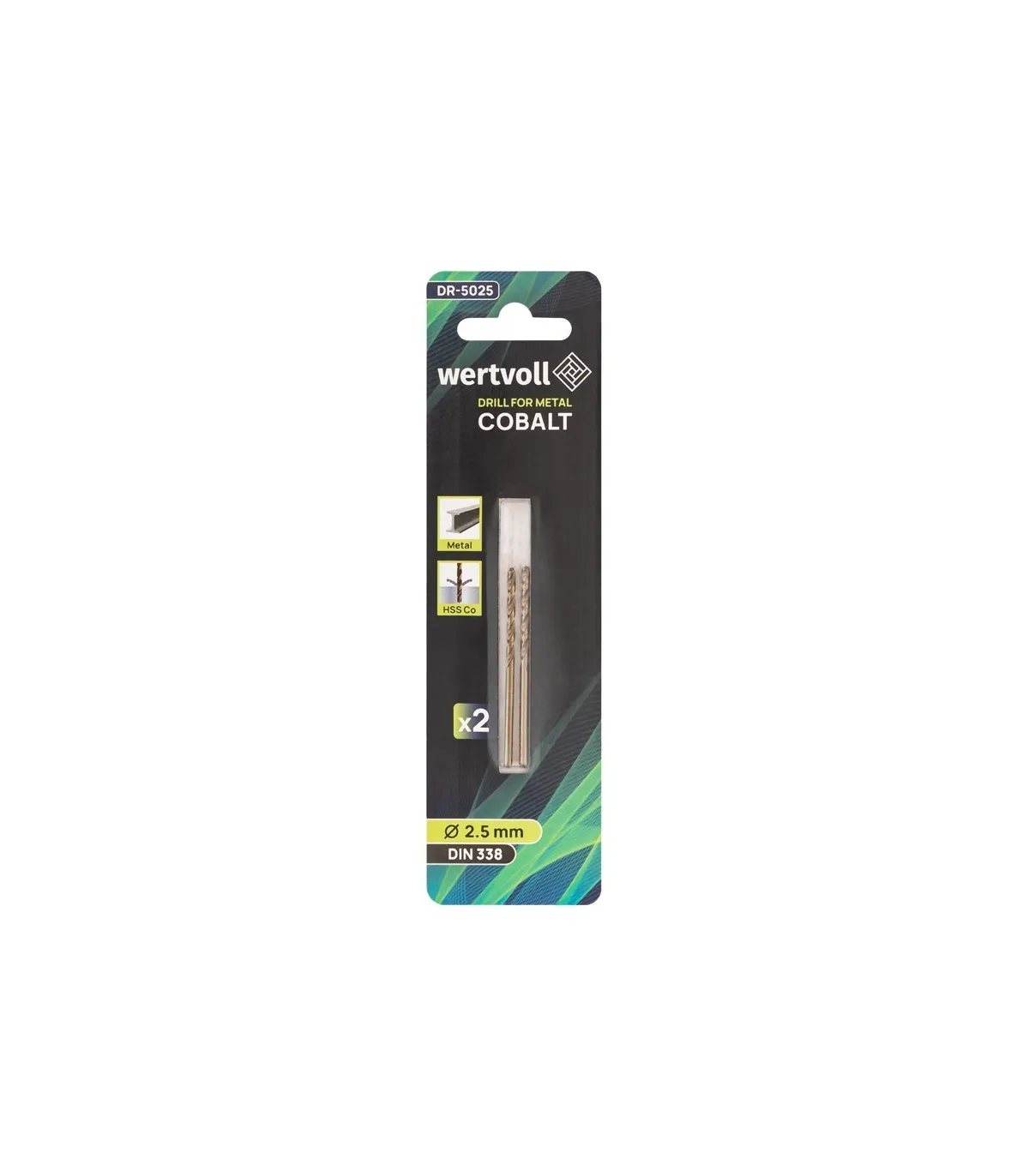 Vrták do kovu HSS 2,5*57 mm COBALT DIN338 sada 2 ks WERTVOLL je ideálním řešením pro vytvoření přesných otvorů v kovových materiálech.
