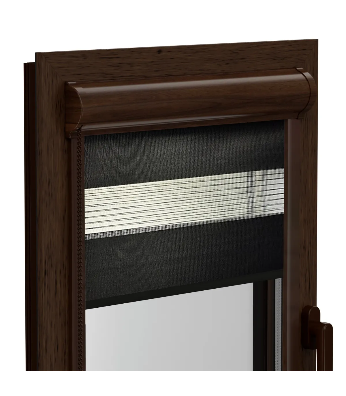 Estetická a jemná hliníková kazeta a vodiace lišty dokonale ladia s rámom okna a svojou funkčnosťou poskytujú ešte lepšiu ochranu pred slnkom.