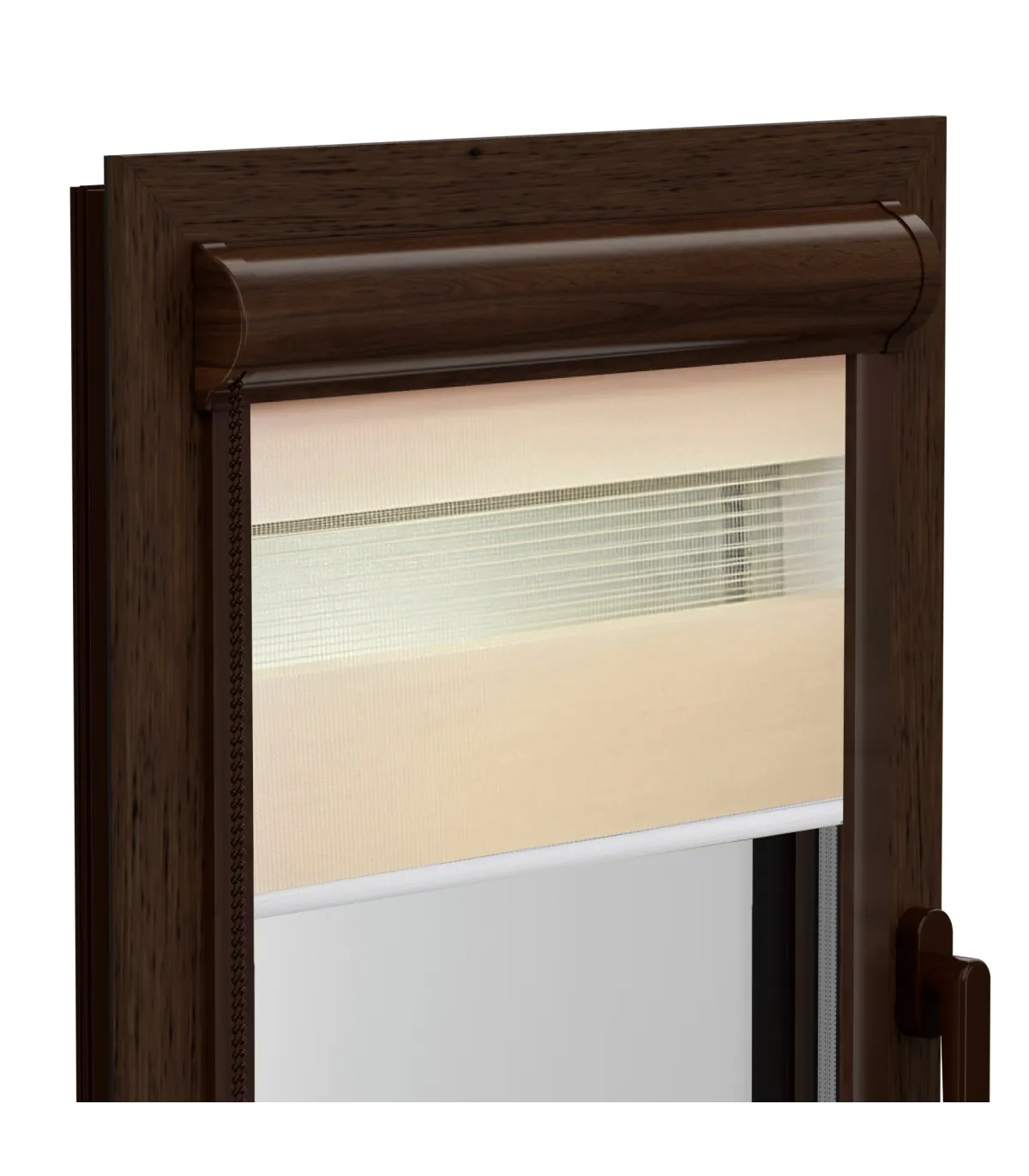 Estetická a jemná hliníková kazeta a vodiace lišty dokonale ladia s rámom okna a svojou funkčnosťou poskytujú ešte lepšiu ochranu pred slnkom.