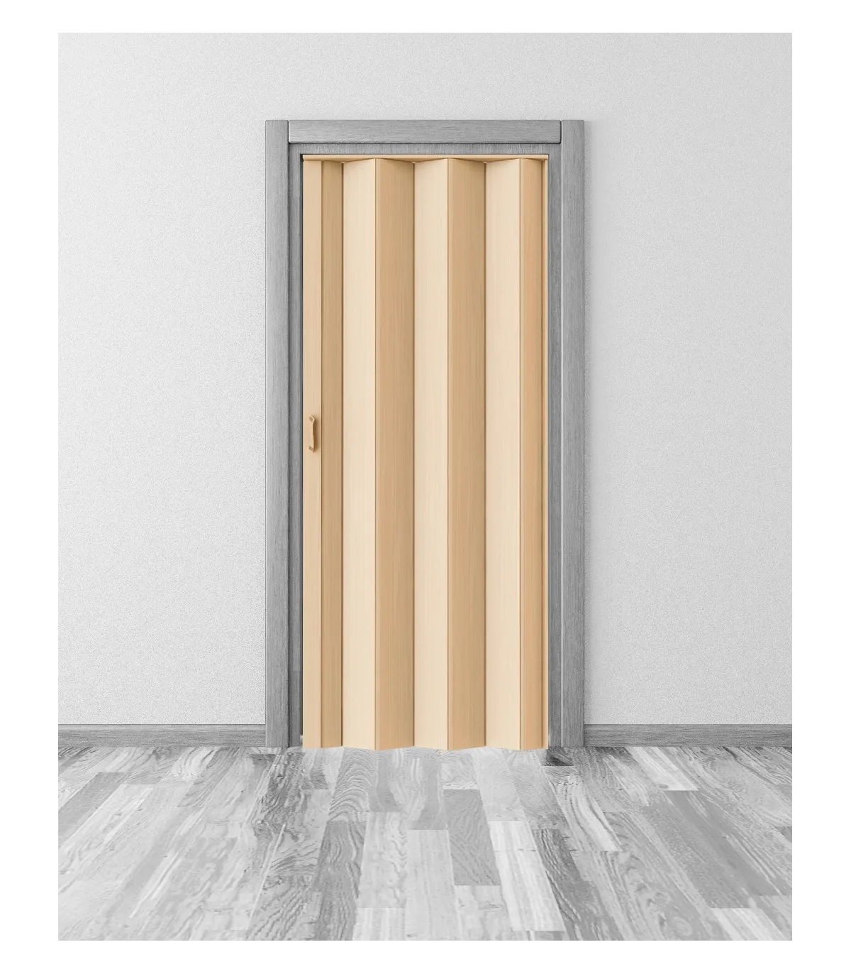 Shrnovací dveře plné v různých šířkách a s výškou 203 cm .