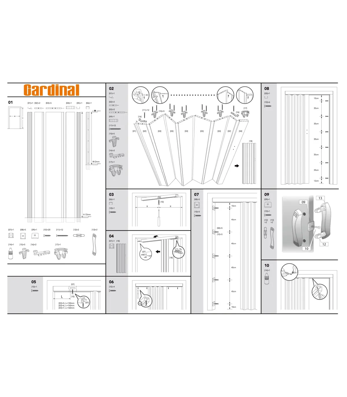 Shrnovací dveře plné v různých šířkách a s výškou 203 cm .
