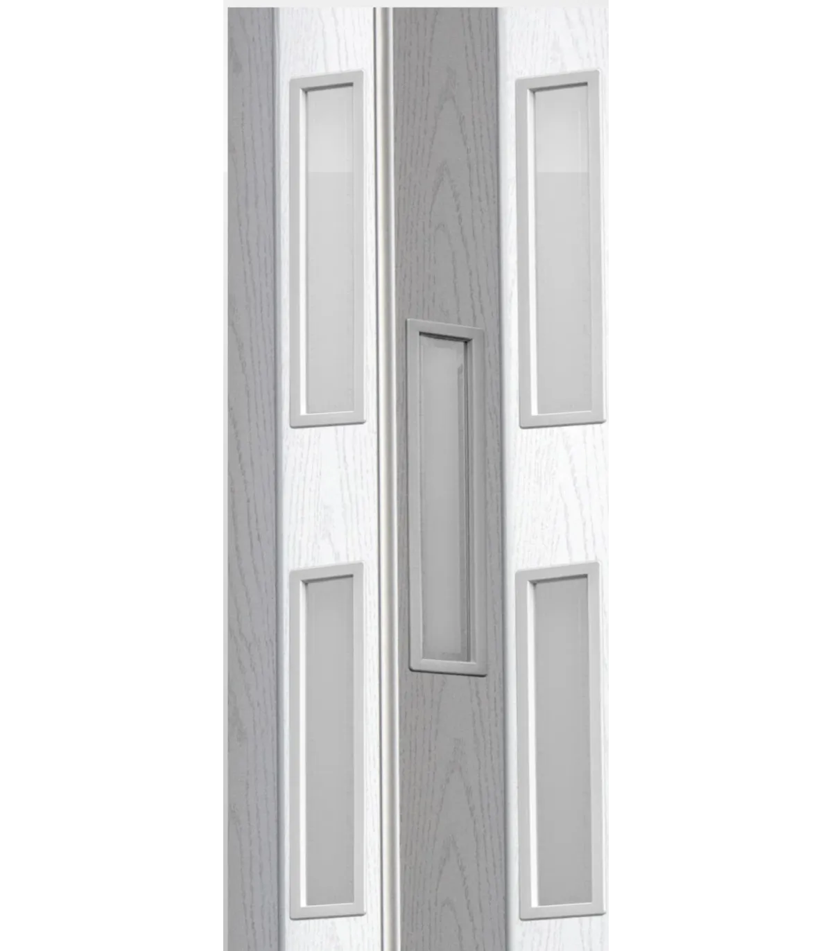 Shrnovací dveře plné v různých šířkách a s výškou 203 cm .