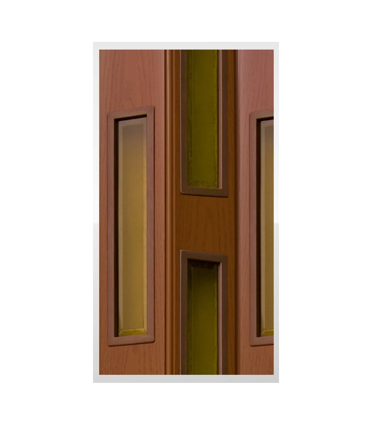 Shrnovací dveře plné v různých šířkách a s výškou 203 cm .